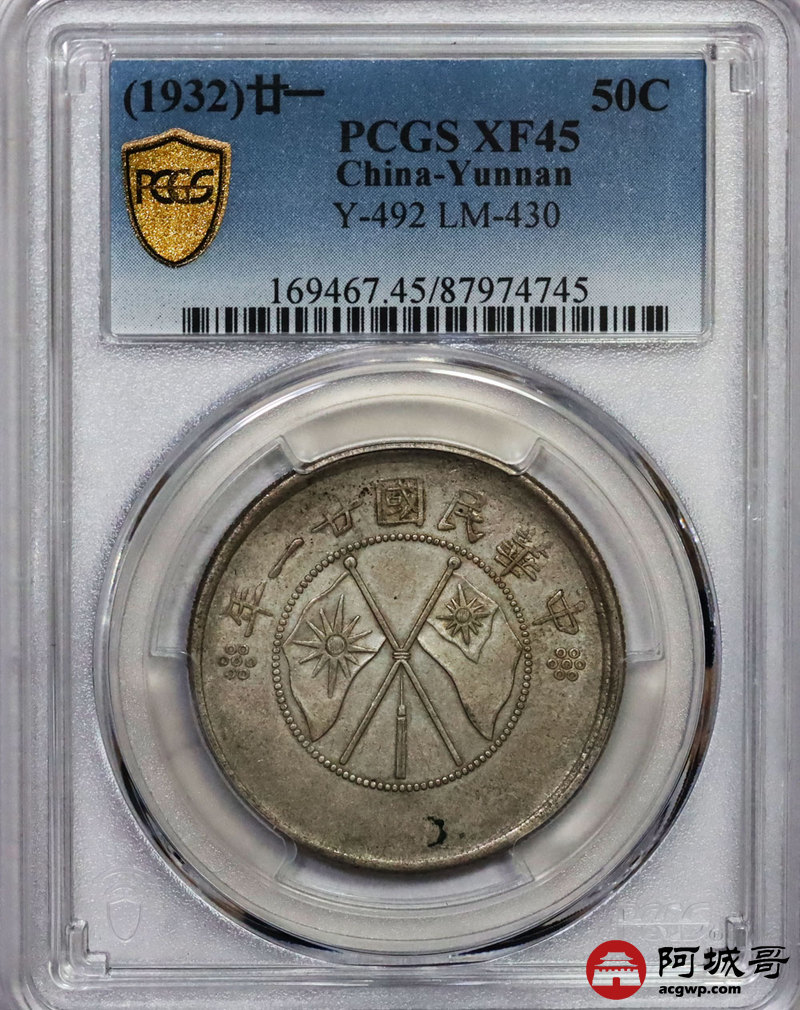 Lot:14 原味 云南双旗半圆 PCGS XF45