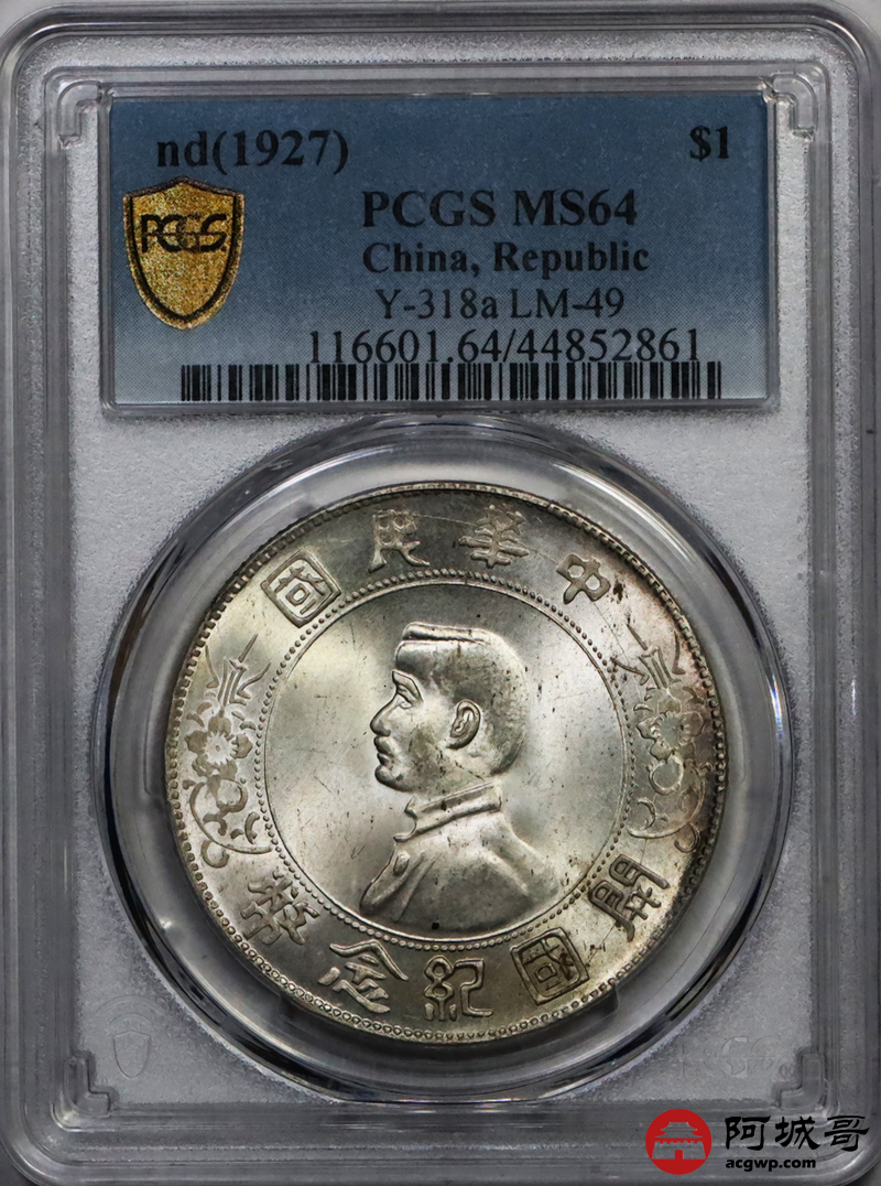 Lot:2 原光 开国纪念孙小头壹元 双日开 PCGS MS 64