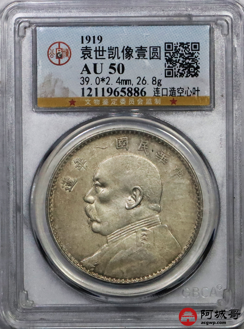 Lot:29 原味 民国八年大头 壹元 公博 AU 50