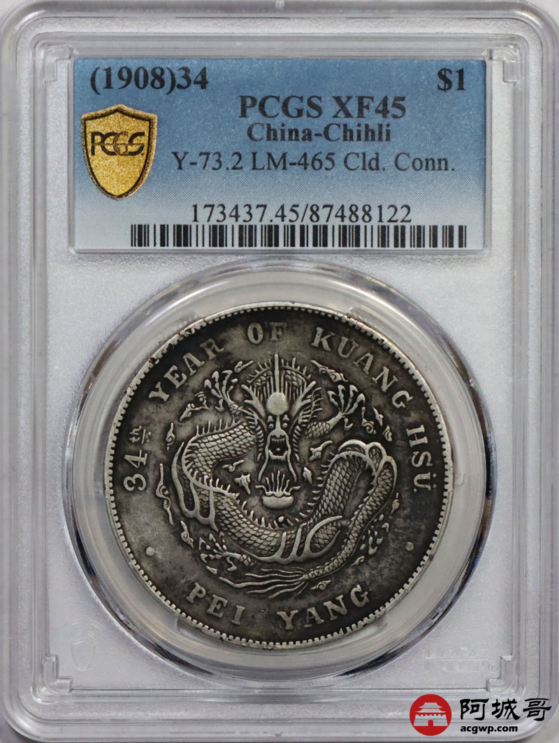 Lot:null 原味 江南 己亥 龙洋 七钱二分 老龙版PCGS VF 30
