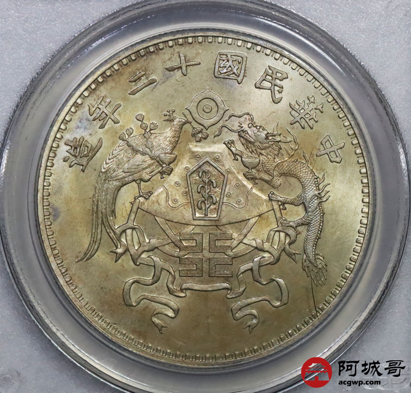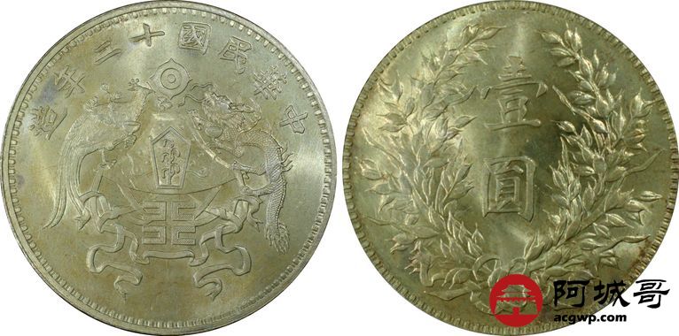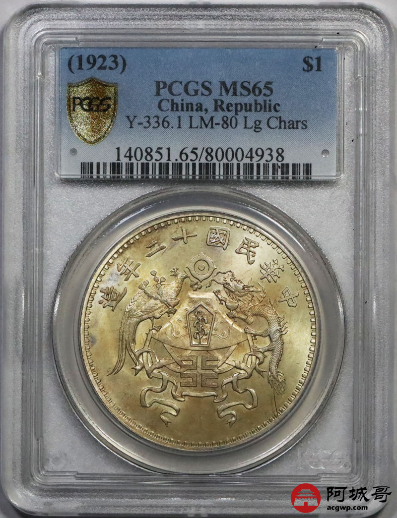 Lot:13 黄油车轮光 民国十二年龙凤大字壹圆 PCGS MS65