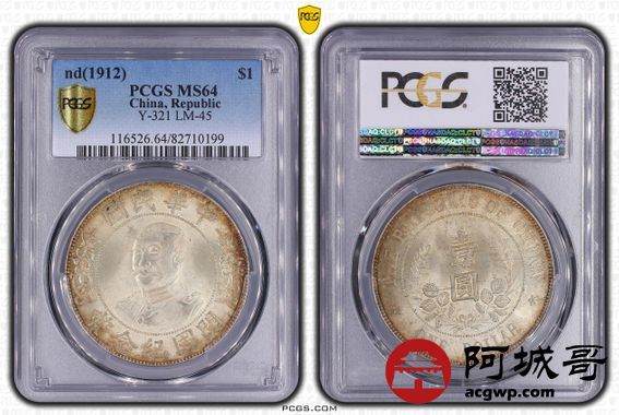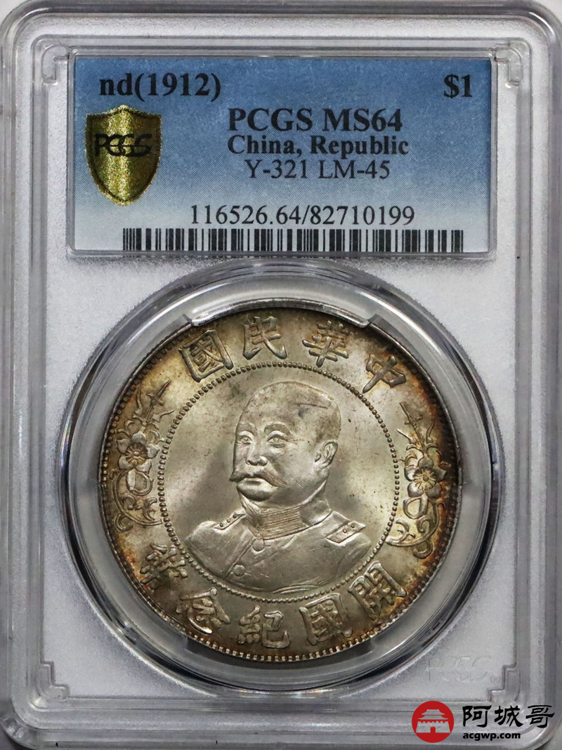 Lot:6 环彩黄油转光 黎元洪纪念币 PCGS MS64