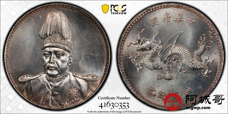 Lot:9 粉转光袁像飞龙纪念币 PCGS MS64