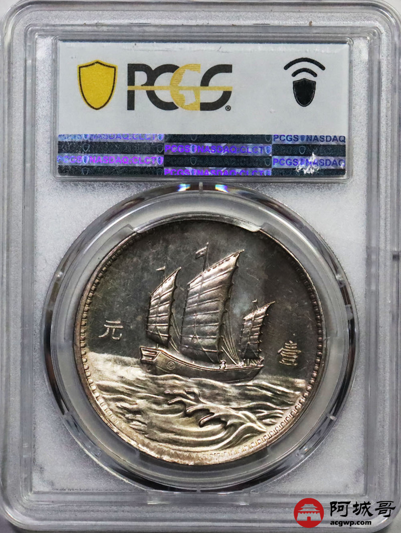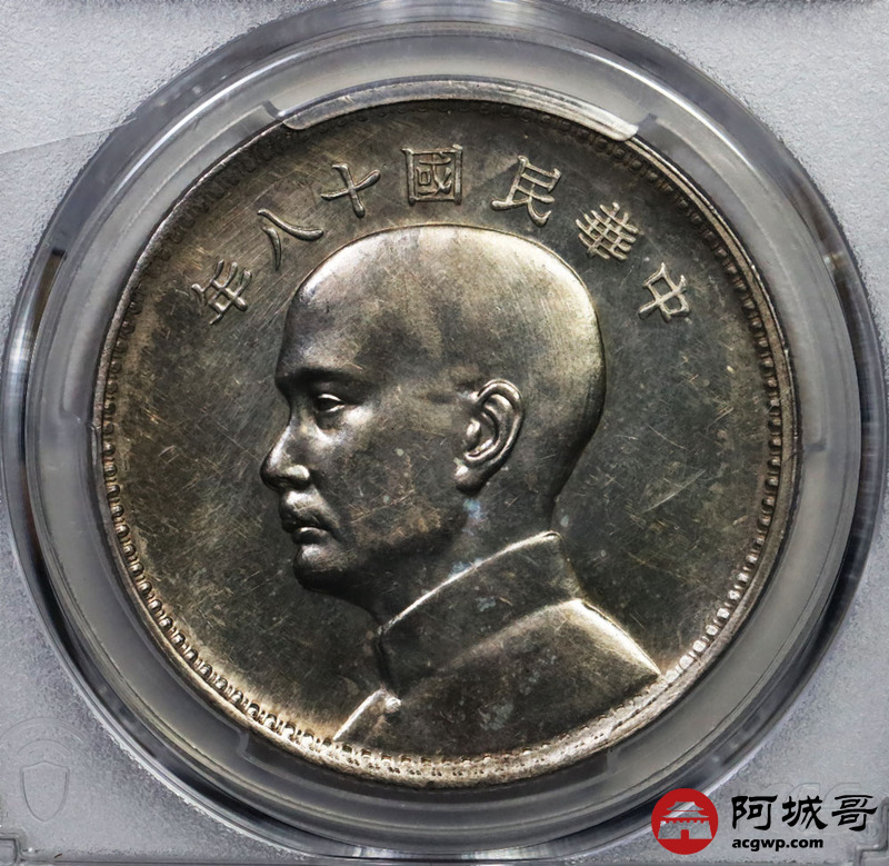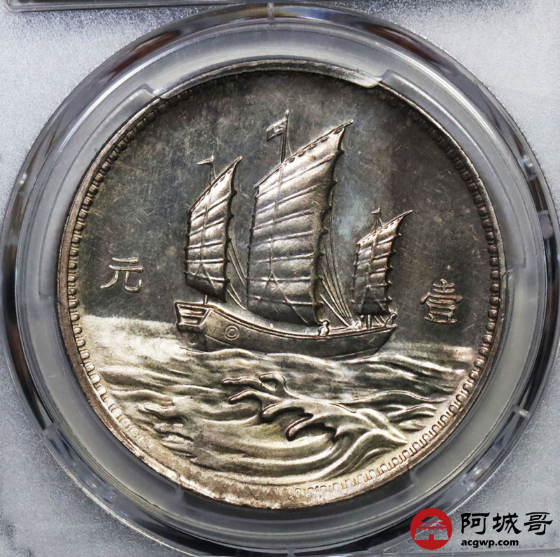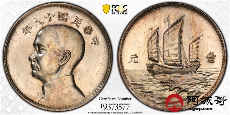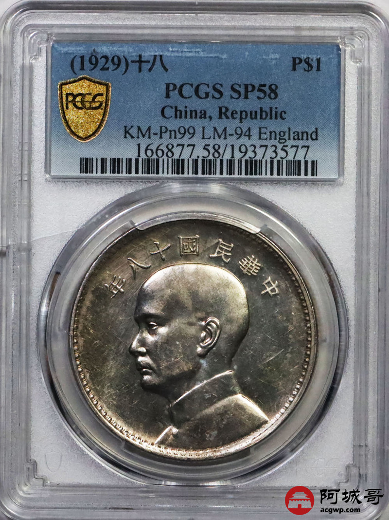 Lot:20 深打 民国十八年 英格兰版 孙像三帆样币 PCGS SP58 盒小裂