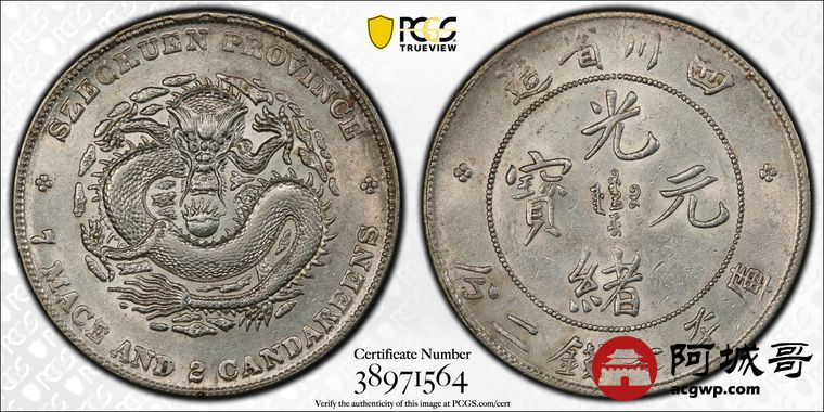 Lot:22 转光 四川光绪七钱二分PCGS AU58