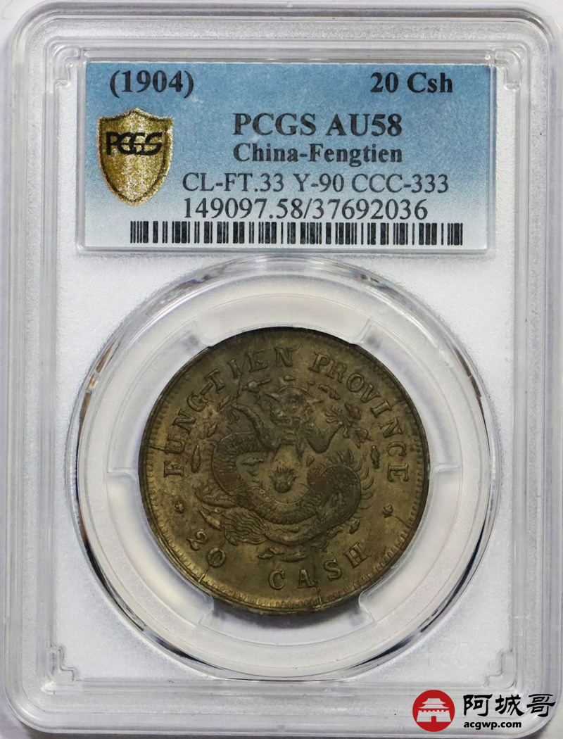 Lot:18 奉天甲辰二十文 PCGS AU58