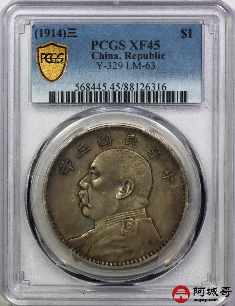 Lot:null 原味 包浆 民国三年大头壹元 PCGS XF 45