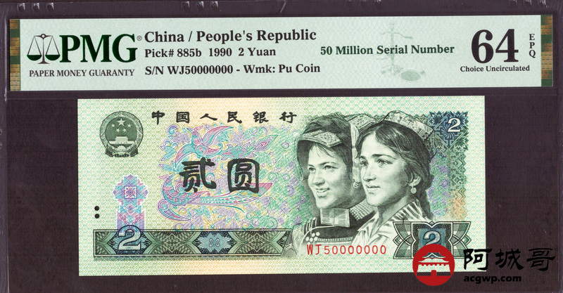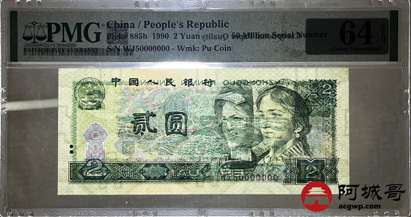 Lot:null 1990年 中国人民银行 贰圆 PMG 64EPQ
