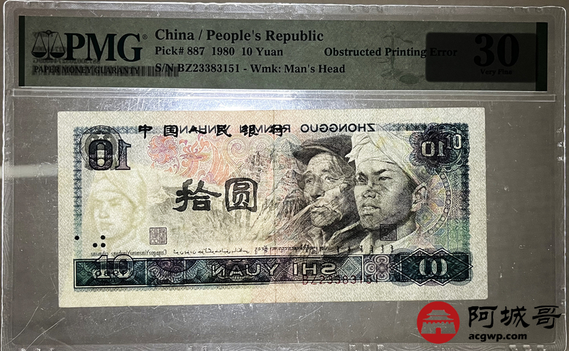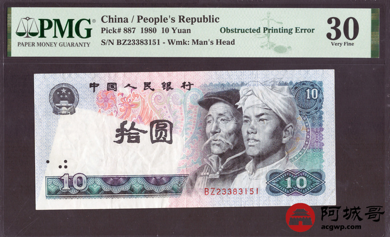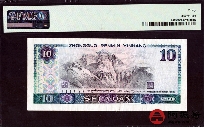 Lot:null 1980年 中国人民银行 拾圆 PMG 30