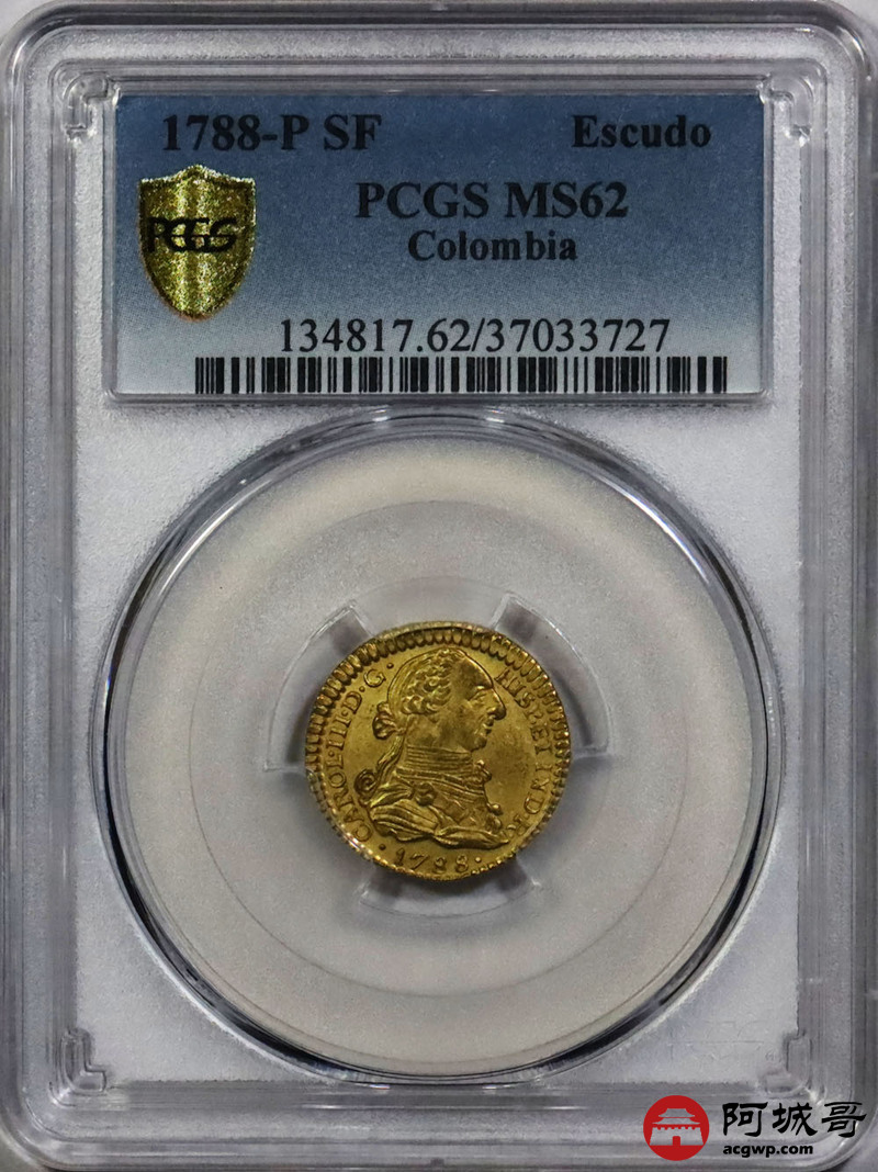 Lot:null 1788-P SF 哥伦比亚金币一枚 PCGS MS62评级编号:37033727