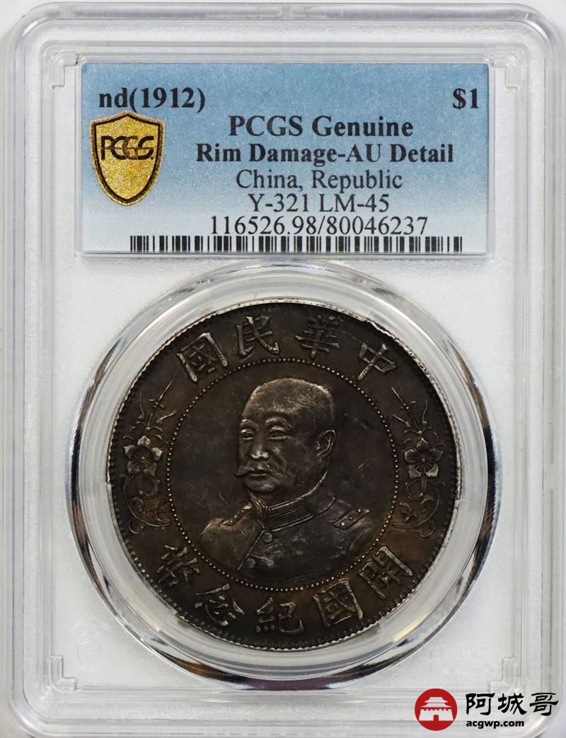Lot:null 黎元洪像无帽开国纪念壹圆银币 PCGS AU98