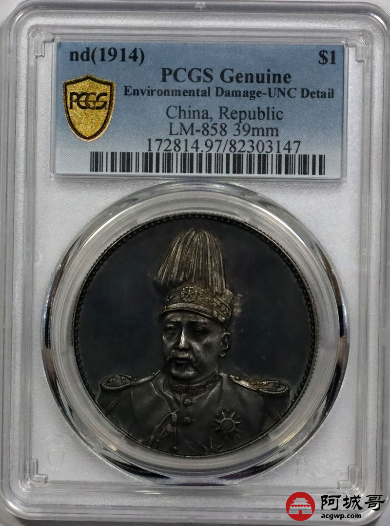 Lot:null 1914年袁世凯像共和纪念壹圆银币一枚 PCGS UNC97评级编号:82303147