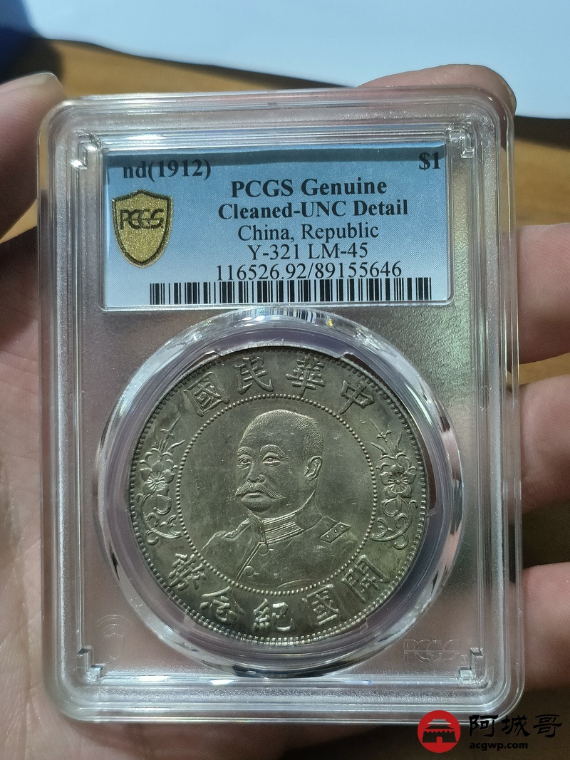 Lot:null 1912年黎元洪像无帽开国纪念壹圆银币一枚 PCGS UNC92评级编号:89155646