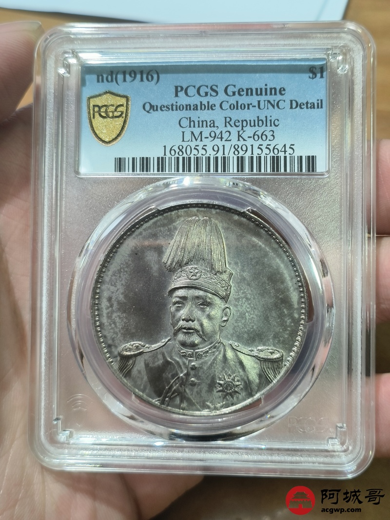 Lot:null 1916年袁世凯像飞龙纪念壹圆银币一枚 PCGS UNC91评级编号:89155645