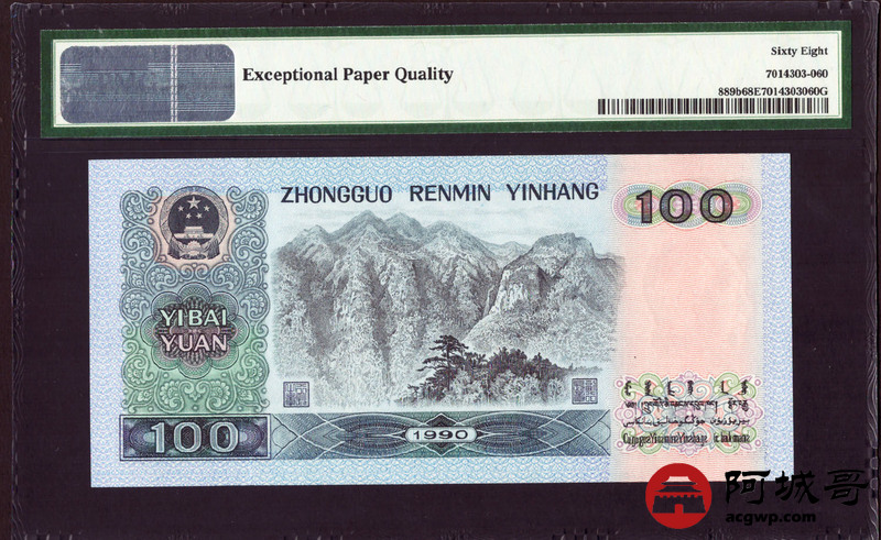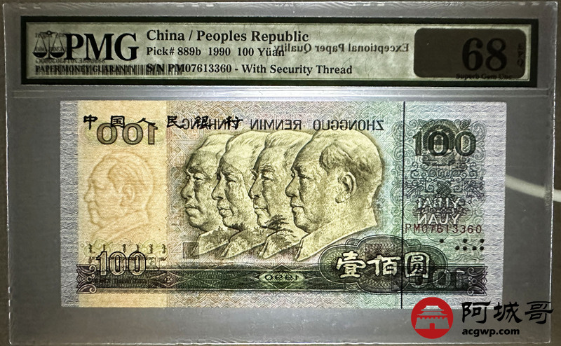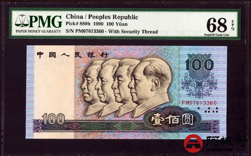 Lot:28 四版 1990年 壹百圆 PMG 68EPQ 好号无4