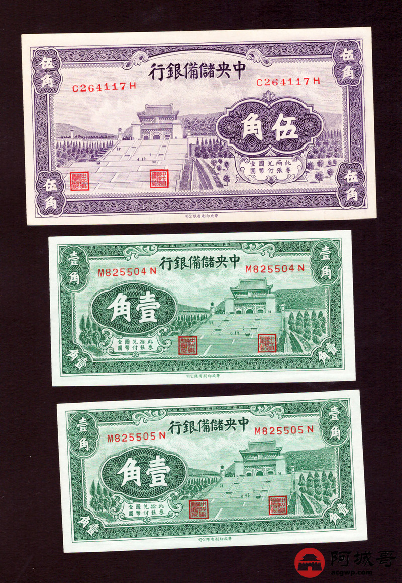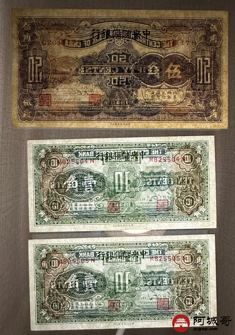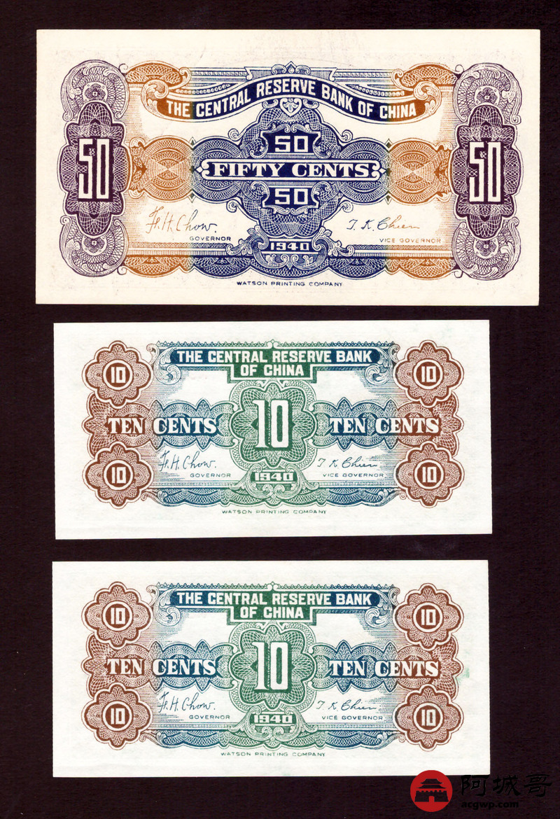 Lot:11 1940年 中国储备银行 壹角、伍角 3张一组 94成新