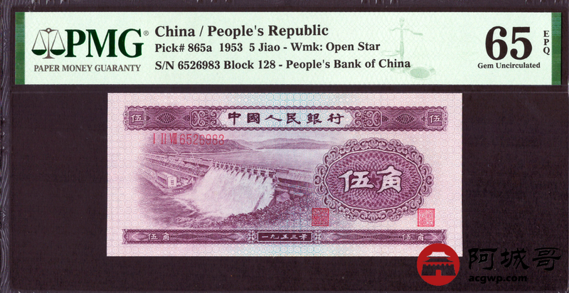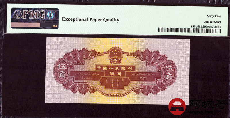 Lot:35 二版 1953年 浅水坝伍角 PMG 65EPQ 好号无47