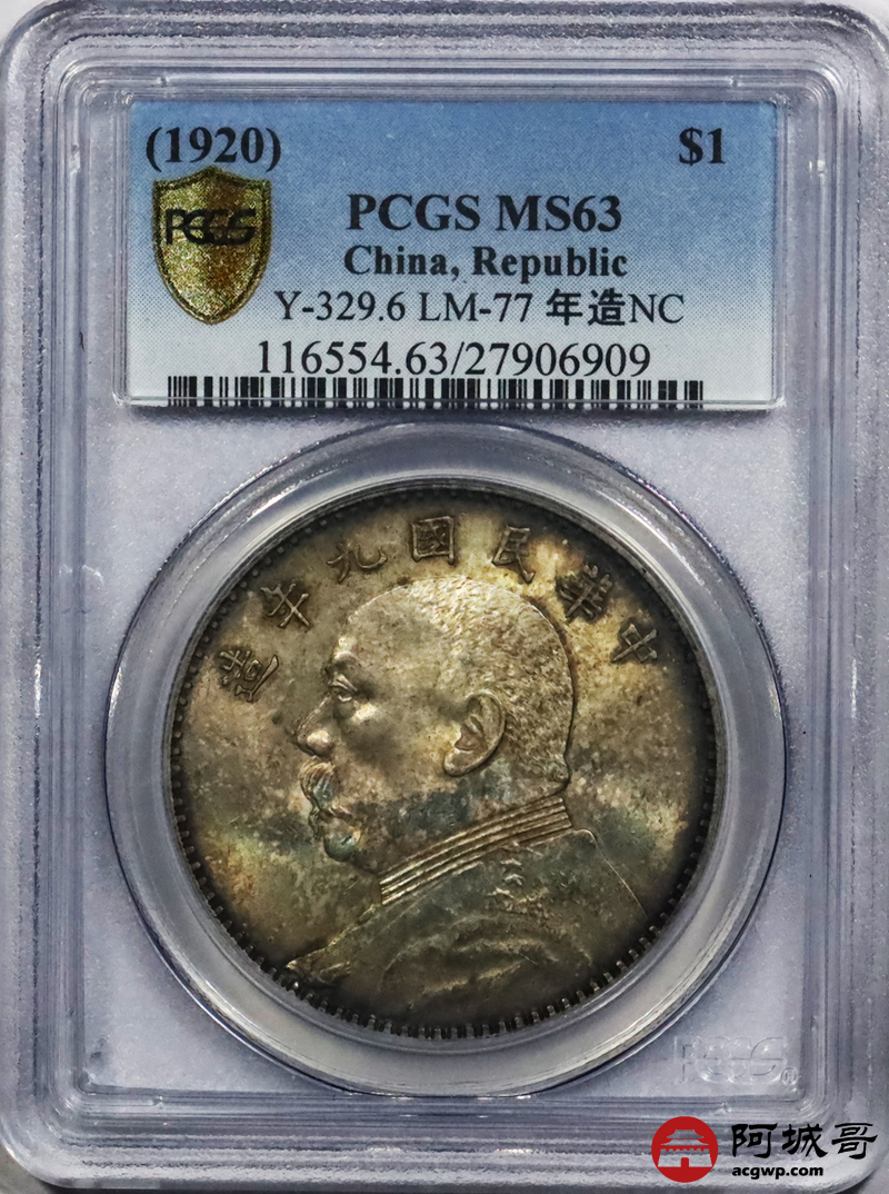 Lot:null 原光 传世五彩 民国九年大头壹元 PCGS MS 63
