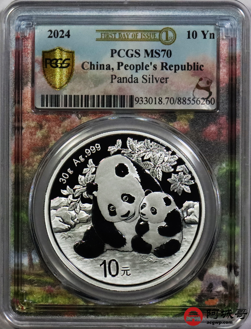 Lot:87 2024年熊猫币10元银币 初打标签“亲情盛开” PCGS MS70