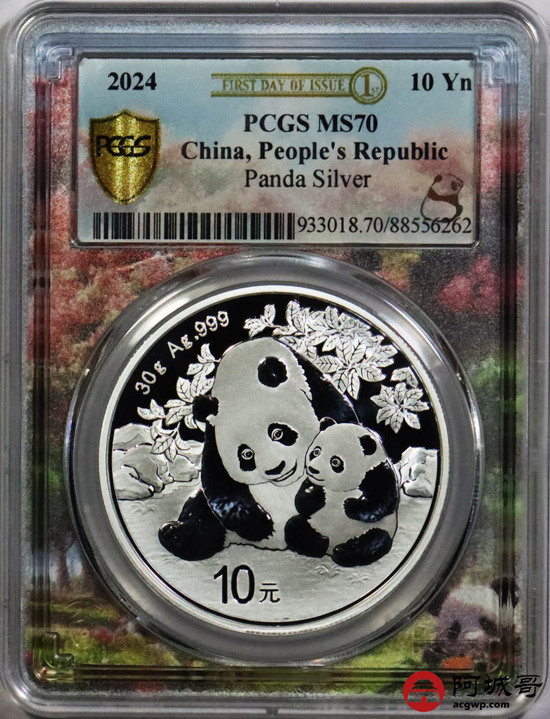 Lot:74 2024年熊猫币10元银币 初打标签“亲情盛开” PCGS MS70