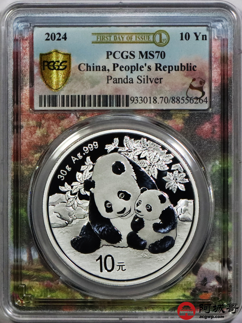 Lot:55 2024年熊猫币10元银币 初打标签“亲情盛开” PCGS MS70