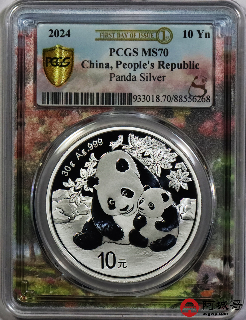 Lot:11 2024年熊猫币10元银币 初打标签“亲情盛开” PCGS MS70