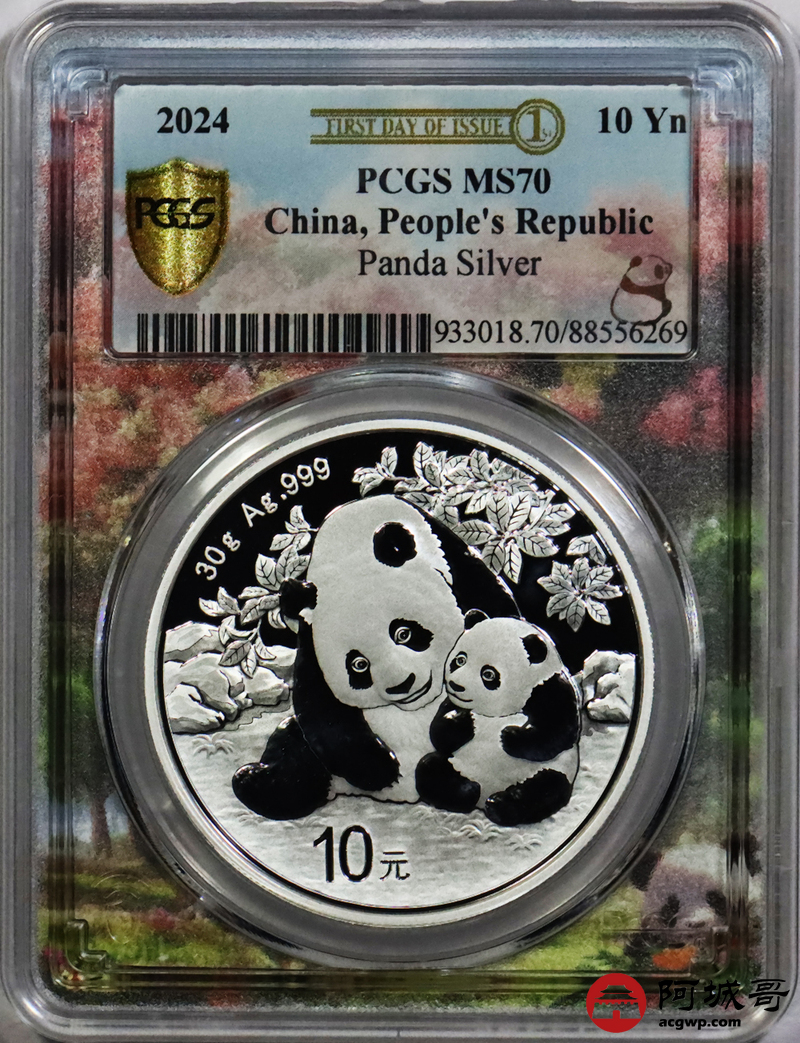 Lot:28 2024年熊猫币10元银币 初打标签“亲情盛开” PCGS MS70