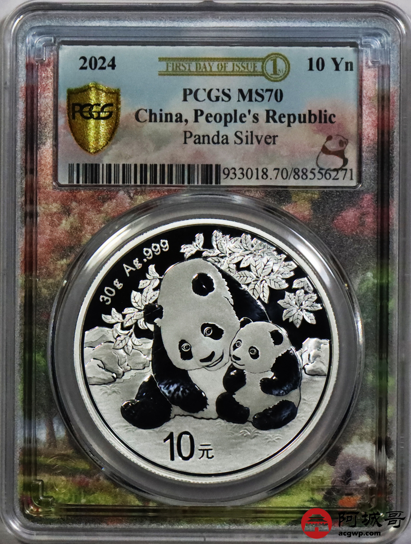 Lot:31 2024年熊猫币10元银币 初打标签“亲情盛开” PCGS MS70
