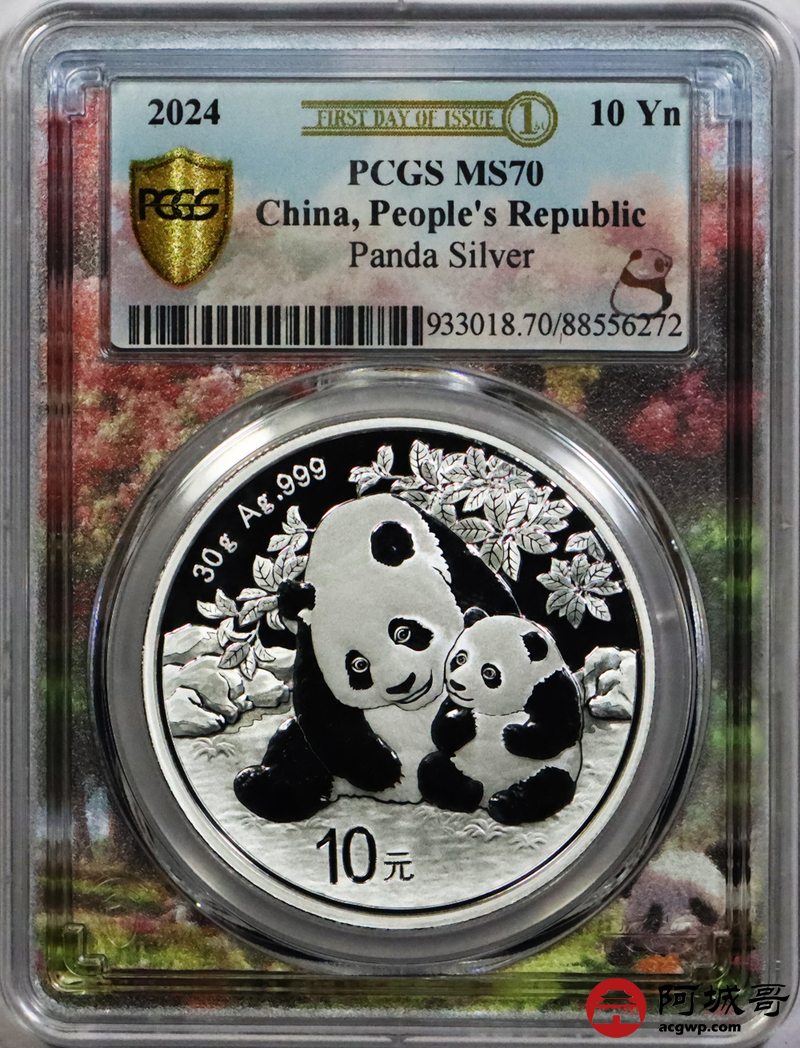 Lot:12 2024年熊猫币10元银币 初打标签“亲情盛开” PCGS MS70