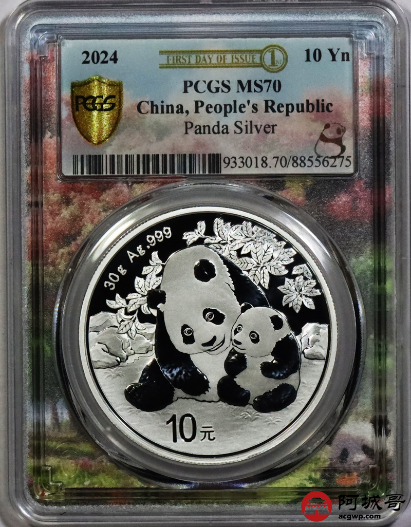 Lot:90 2024年熊猫币10元银币 初打标签“亲情盛开” PCGS MS70