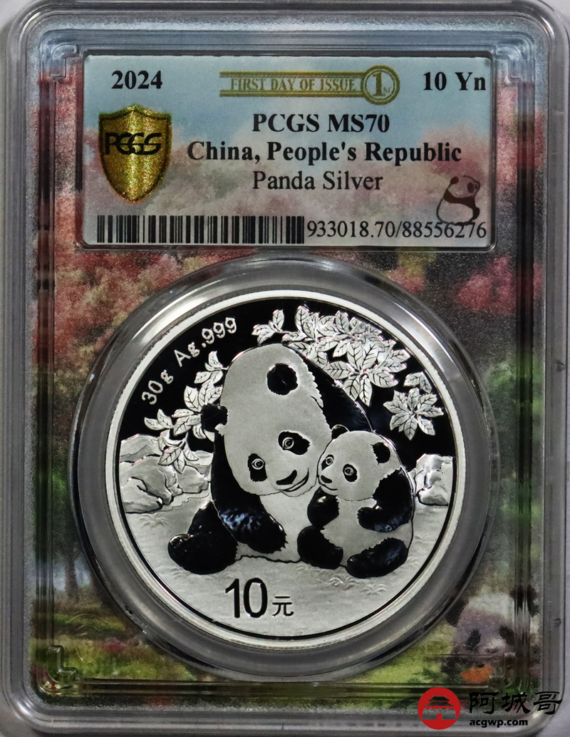 Lot:95 2024年熊猫币10元银币 初打标签“亲情盛开” PCGS MS70