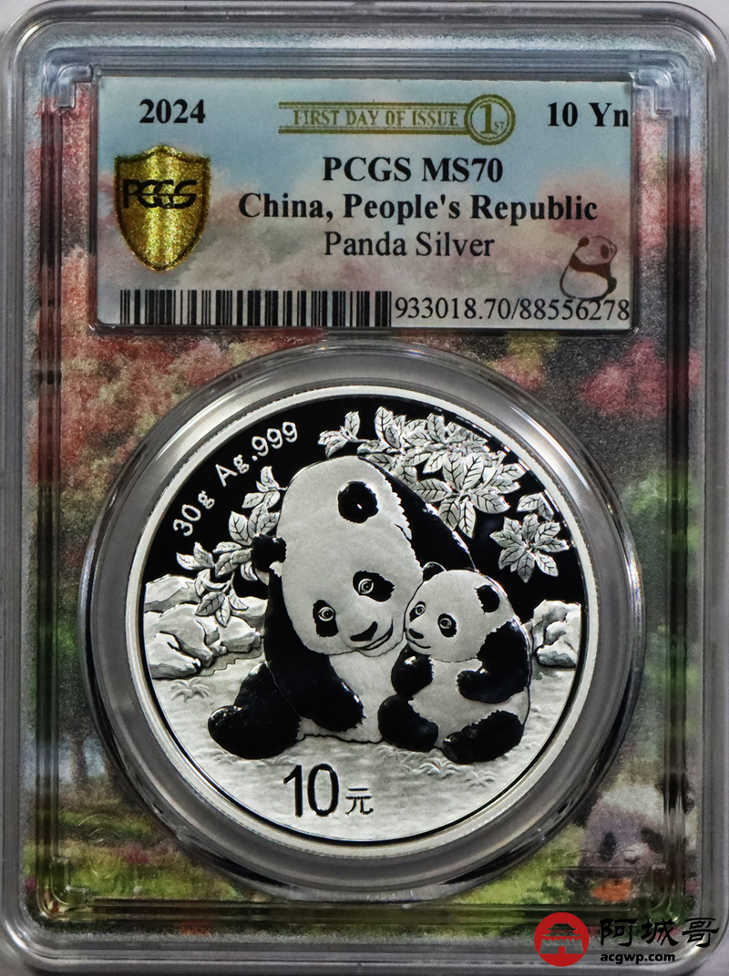 Lot:14 2024年熊猫币10元银币 初打标签“亲情盛开” PCGS MS70
