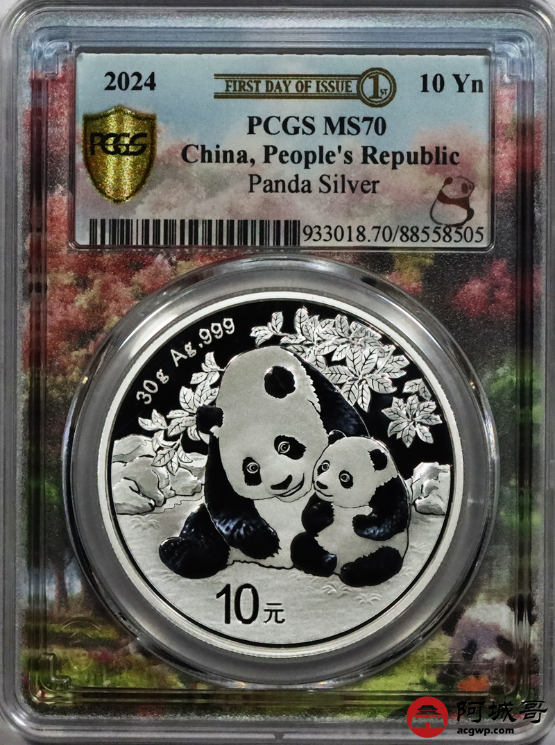 Lot:47 2024年熊猫币10元银币 初打标签 “亲情盛开” PCGS MS70