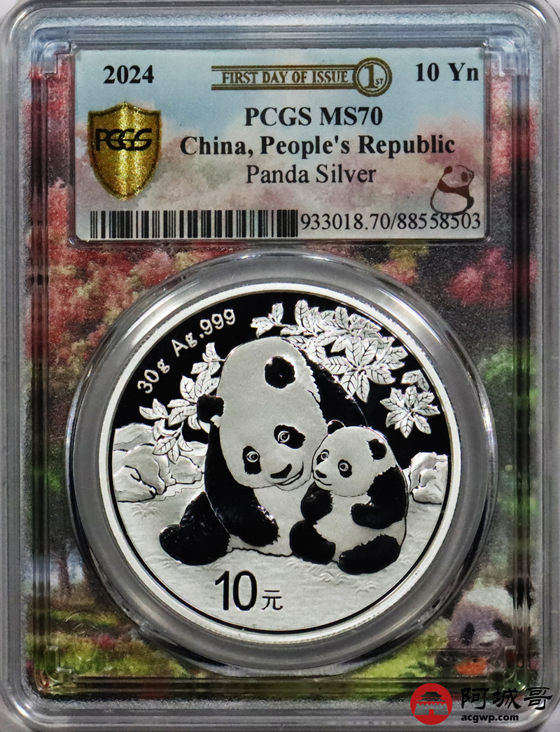 Lot:12 2024年熊猫币10元银币 初打标签 “亲情盛开” PCGS MS70