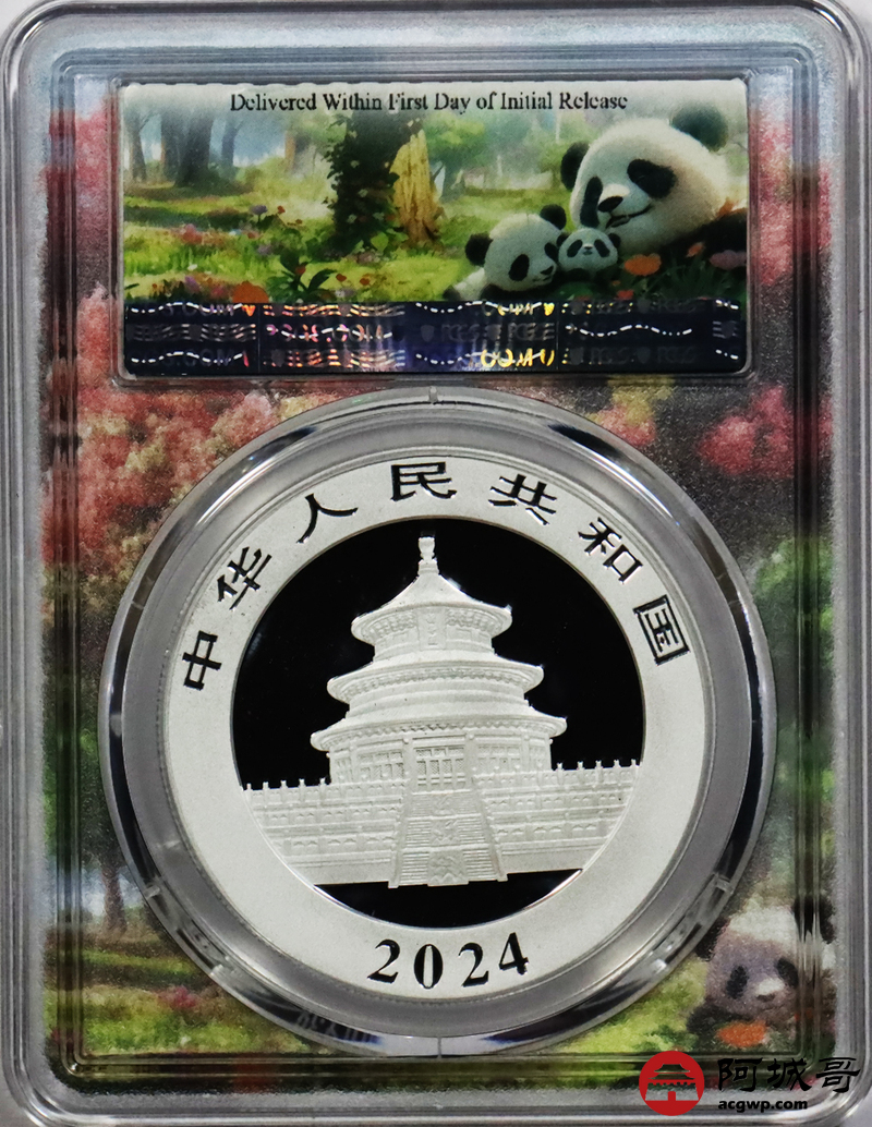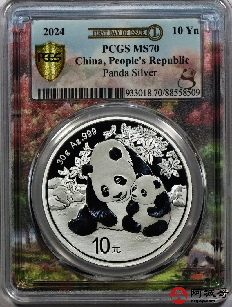 Lot:119 2024年熊猫币10元银币 初打标签 “亲情盛开” PCGS MS70