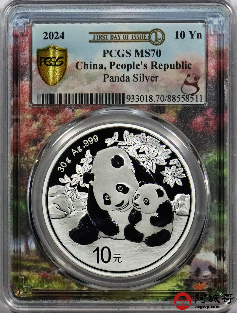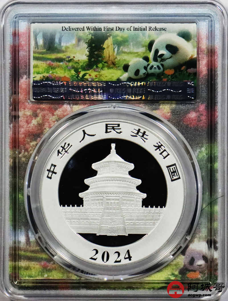 Lot:99 2024年熊猫币10元银币 初打标签 “亲情盛开” PCGS MS70