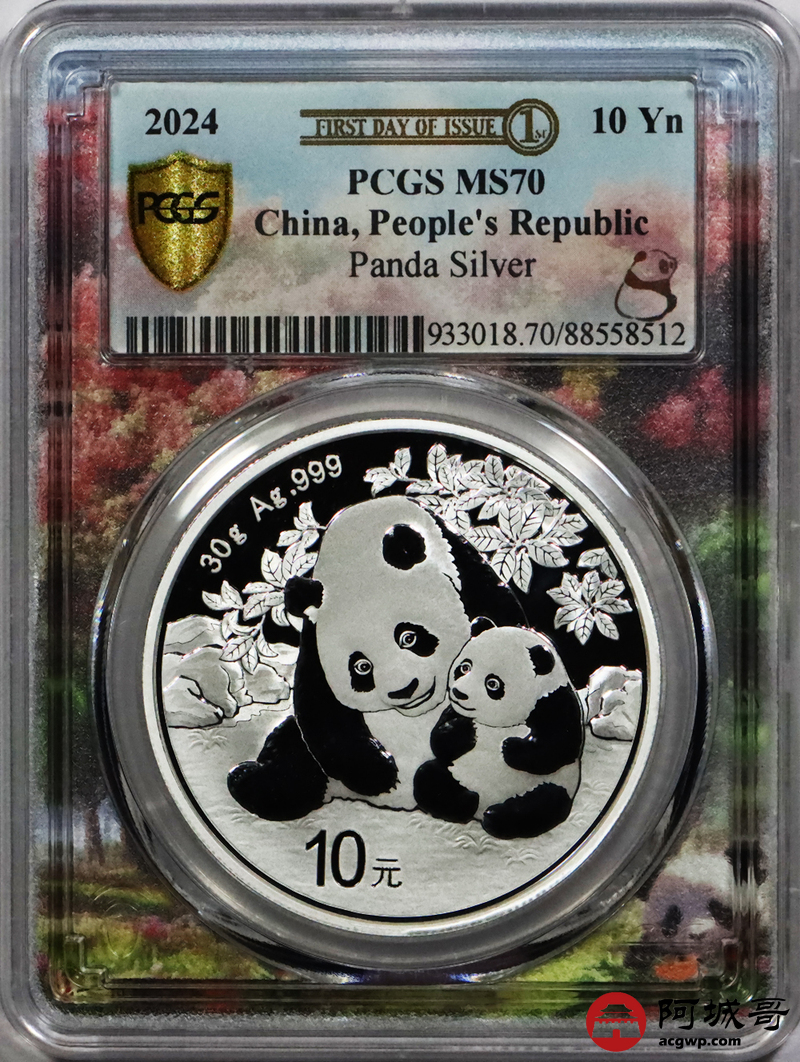 Lot:108 2024年熊猫币10元银币 初打标签 “亲情盛开” PCGS MS70