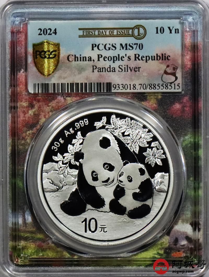 Lot:91 2024年熊猫币10元银币 初打标签 “亲情盛开” PCGS MS70