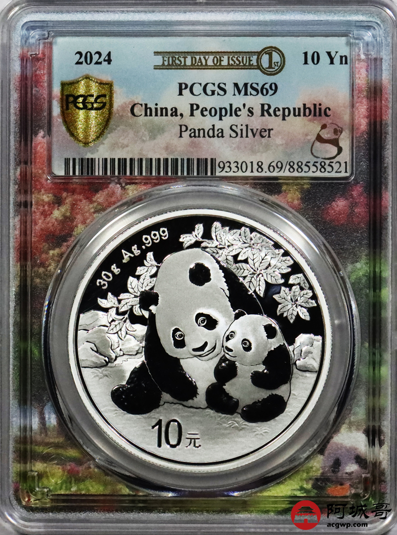Lot:36 2024年熊猫币10元银币 初打标签 “亲情盛开” PCGS MS69