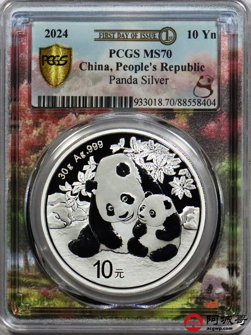 Lot:57 2024年熊猫币10元银币 初打标签 “亲情盛开” PCGS MS70