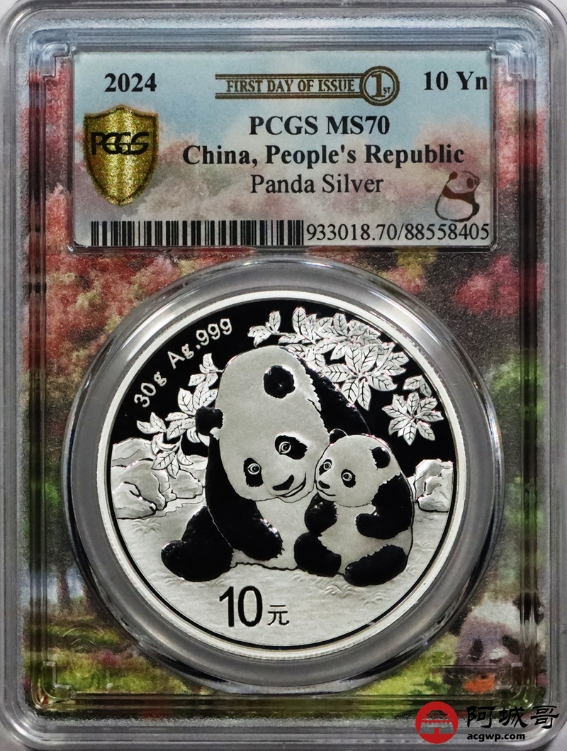 Lot:63 2024年熊猫币10元银币 初打标签 “亲情盛开” PCGS MS70