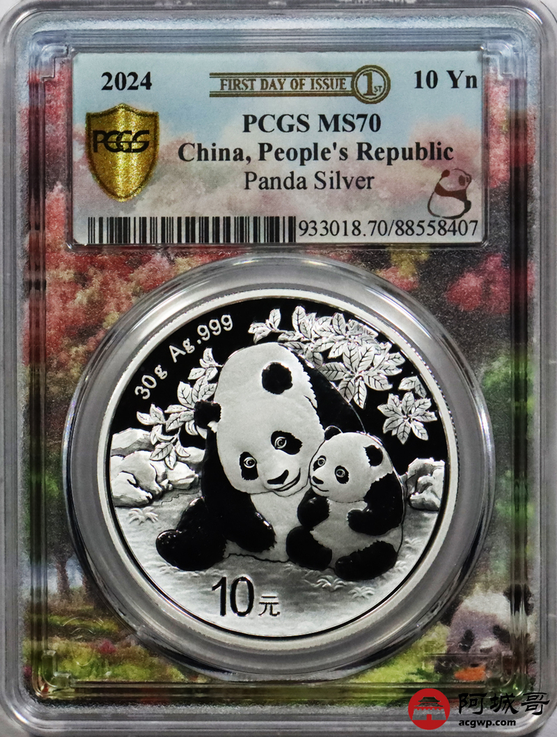 Lot:18 2024年熊猫币10元银币 初打标签 “亲情盛开” PCGS MS70