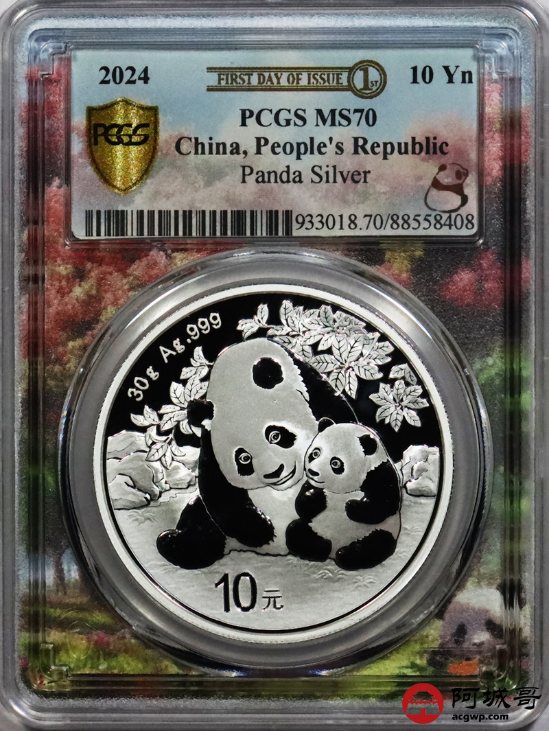 Lot:70 2024年熊猫币10元银币 初打标签 “亲情盛开” PCGS MS70