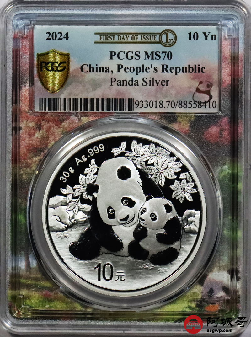 Lot:28 2024年熊猫币10元银币 初打标签 “亲情盛开” PCGS MS70