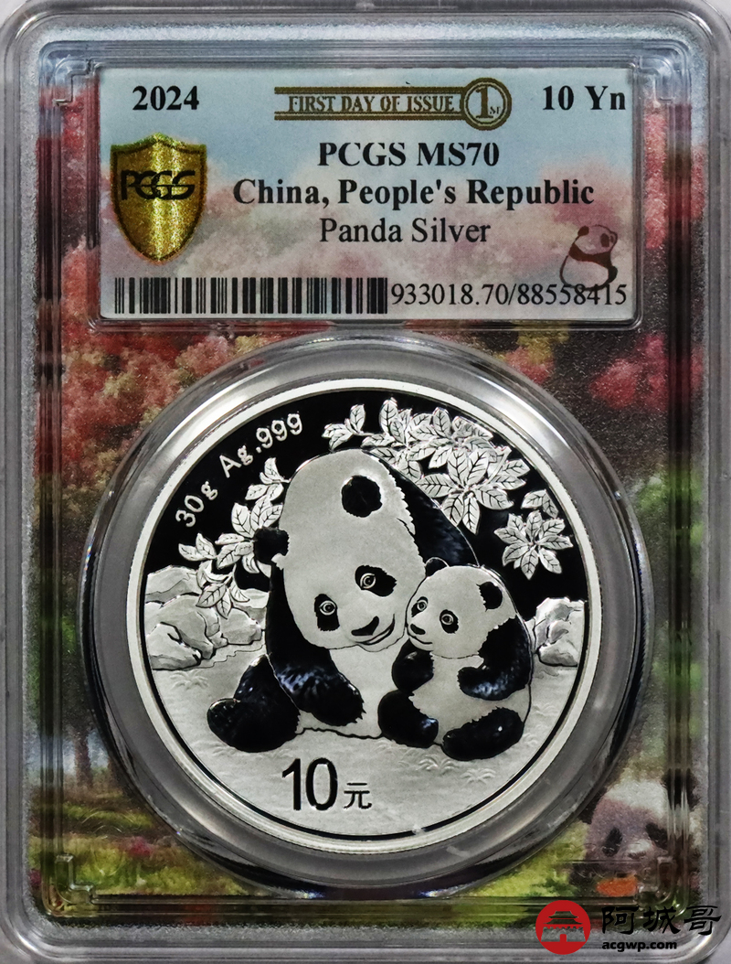 Lot:45 2024年熊猫币10元银币 初打标签 “亲情盛开” PCGS MS70