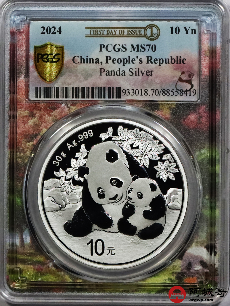 Lot:78 2024年熊猫币10元银币 初打标签 “亲情盛开” PCGS MS70