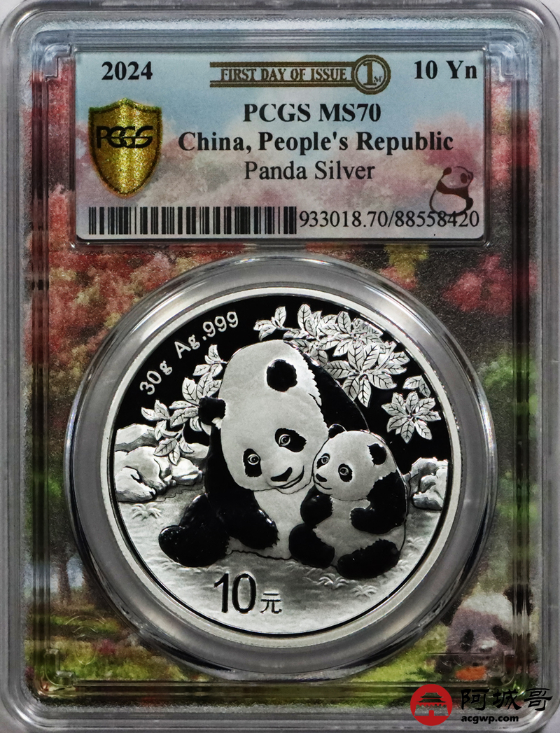 Lot:39 2024年熊猫币10元银币 初打标签 “亲情盛开” PCGS MS70