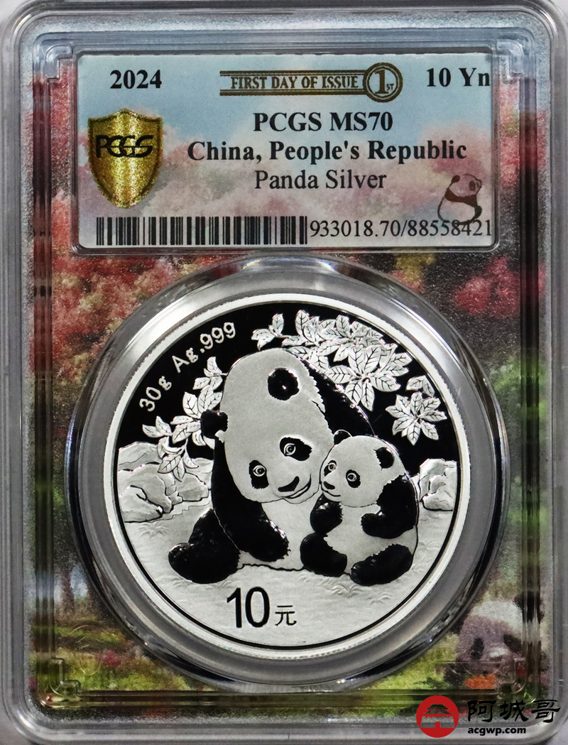 Lot:113 2024年熊猫币10元银币 初打标签 “亲情盛开” PCGS MS70