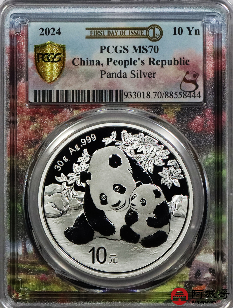 Lot:20 2024年熊猫币10元银币 初打标签 “亲情盛开” PCGS MS70