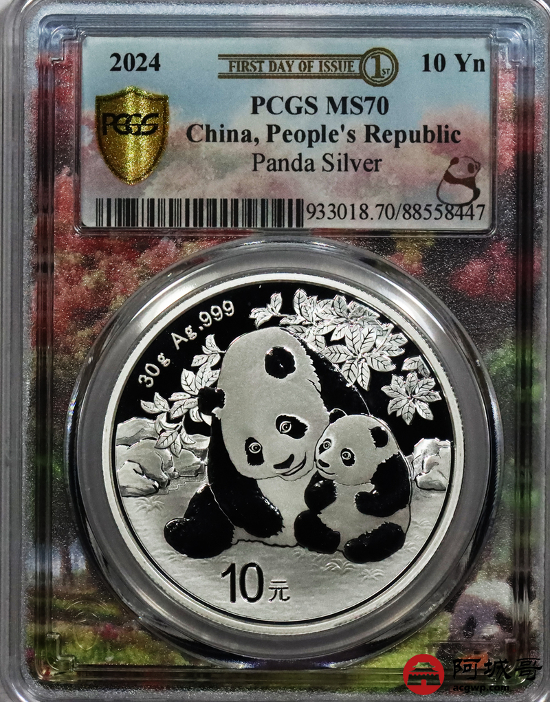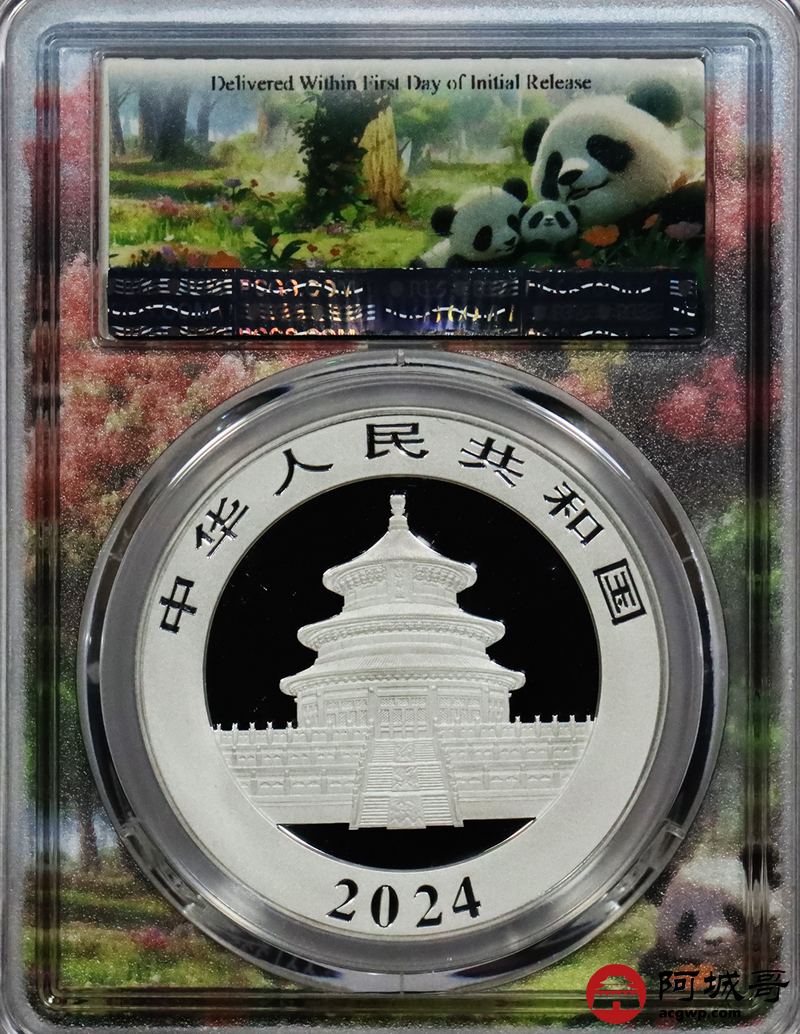 Lot:69 2024年熊猫币10元银币 初打标签 “亲情盛开” PCGS MS70